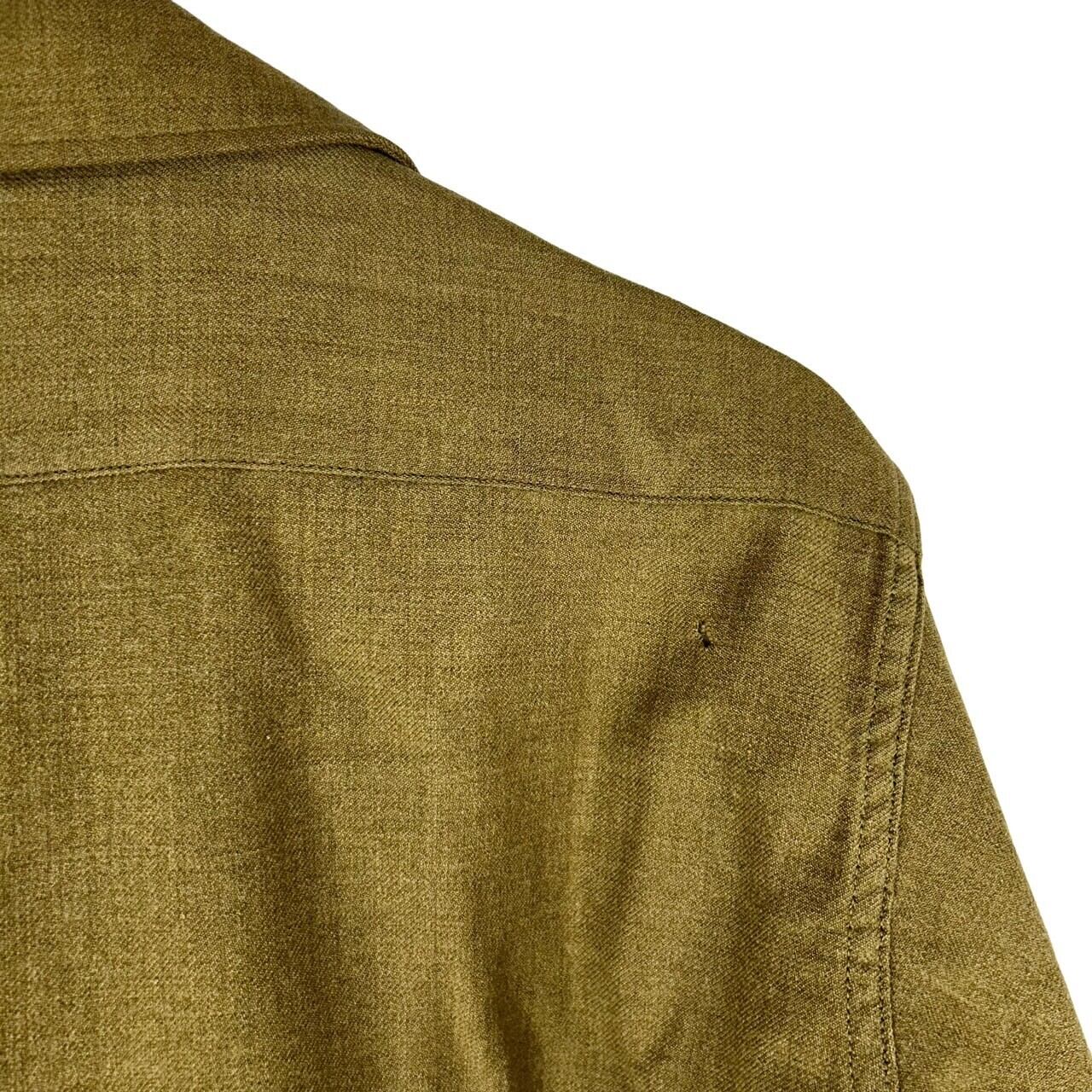 40年代アメリカ軍のビンテージのマスタードシャツ。丈夫で着心地の良い一着です。ノスタルジックな雰囲気が漂うデザインは、個性的なスタイリングにぴったり。カジュアルなアウトフィットにアクセントをプラスしてくれます。